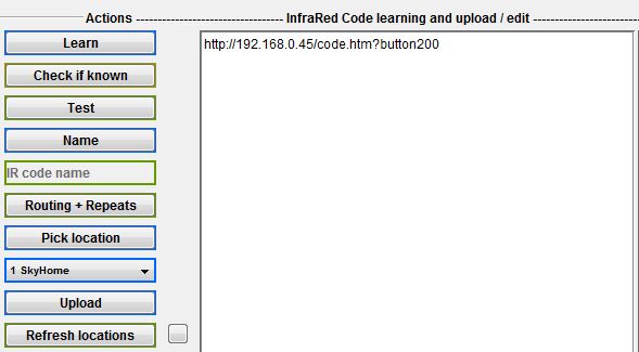 If all works as expected then repeat the steps to store IR codes and http strings in the other locations, remembering that stored IR code location 2 corresponds to stored http code location 22 and so on.